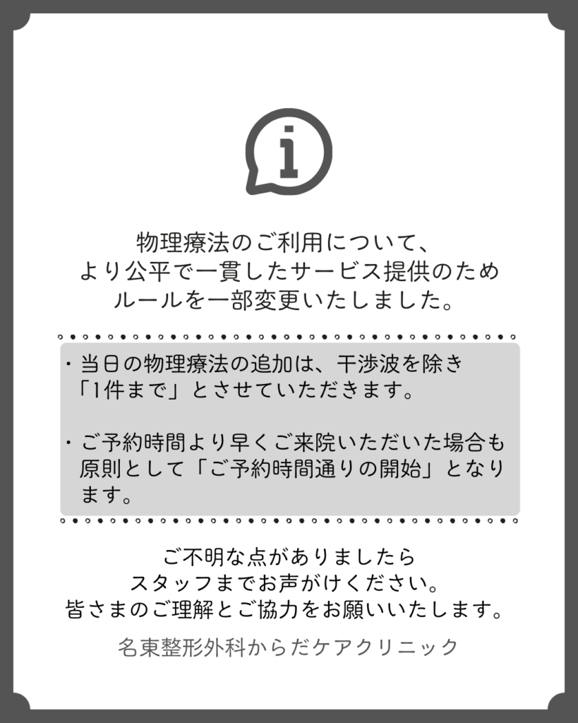 【物理療法ご利用ルール変更のお知らせ】