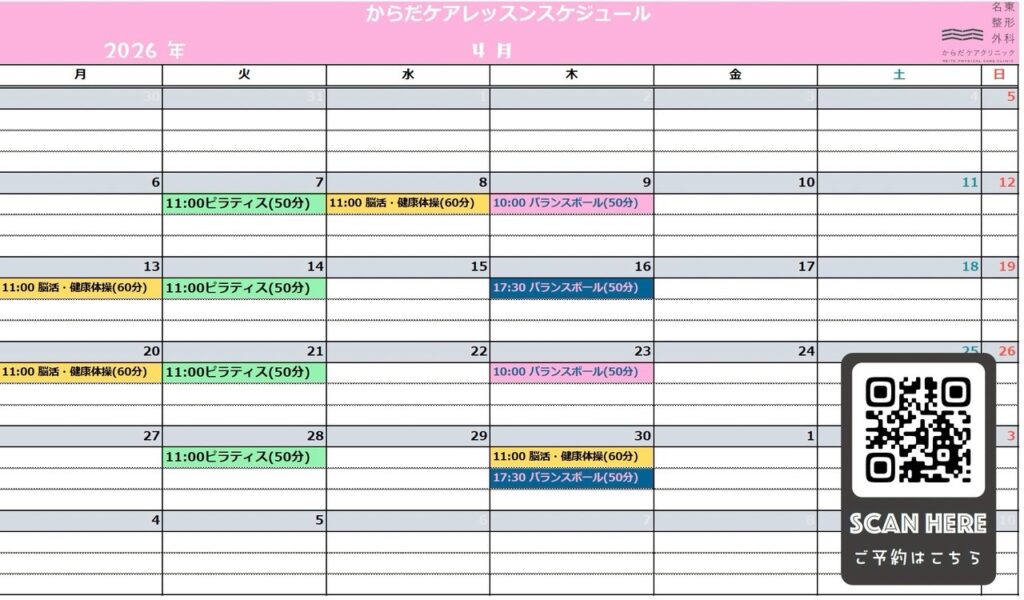 からだケアレッスンをお申し込みの際は、レッスン日に保険診療のご予約がないかをご確認ください。