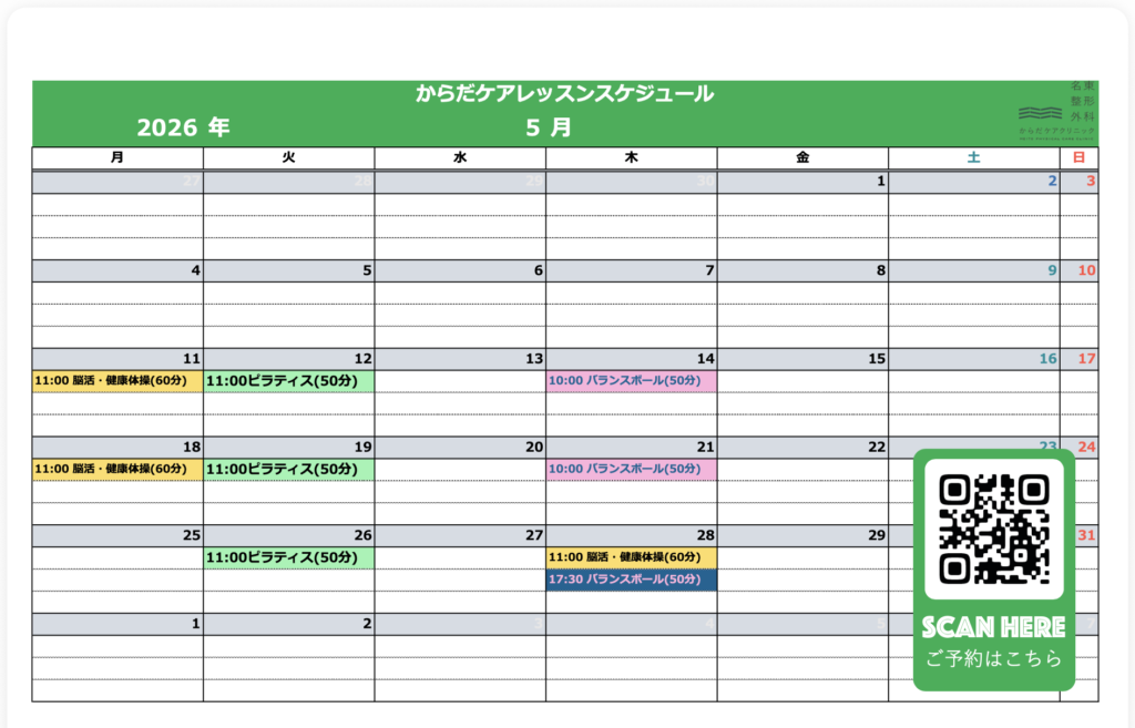 5月のからだケアレッスンスケジュールになります。
